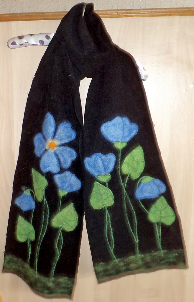 шарф голубые цветы