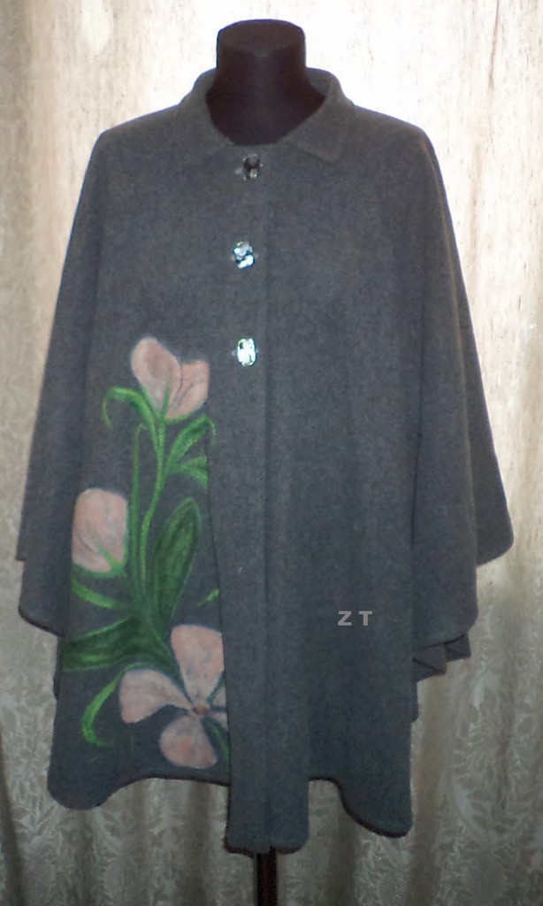 серое пончо с розовыми цветами 4000 руб.