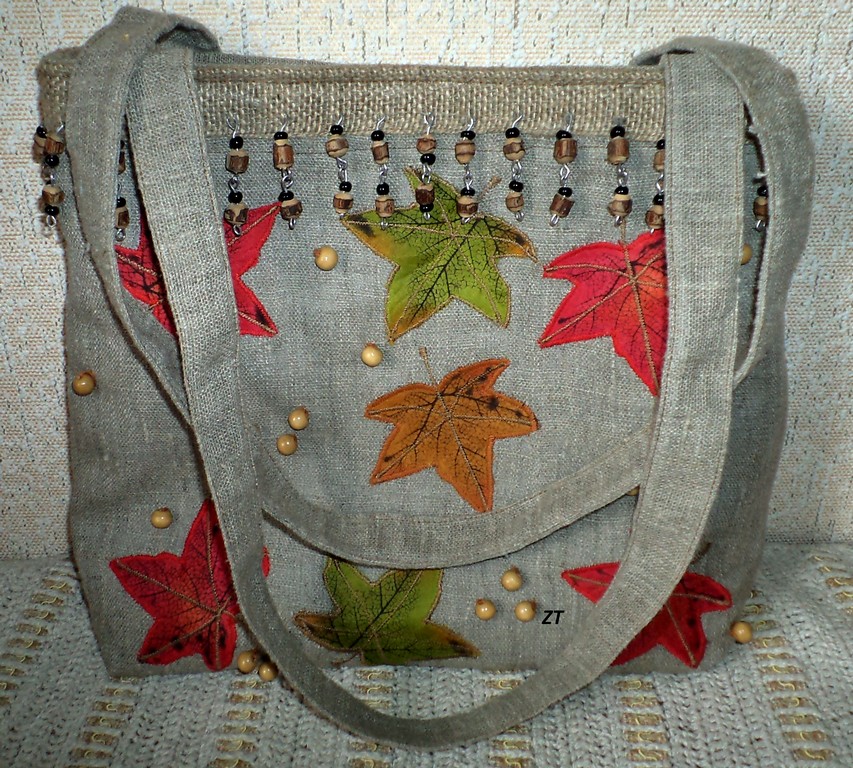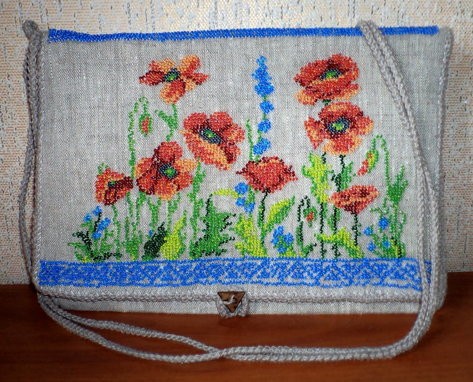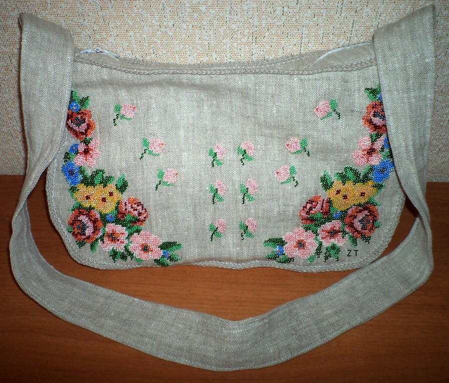 Сумочка из льна вышитая бисером.